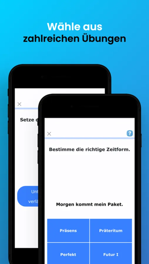 Wähle aus zahlreichen Übungen (mehr als 1500+ in verschiedenen Sprachniveaus A1-C1) und verschiedenen Übungstypen: