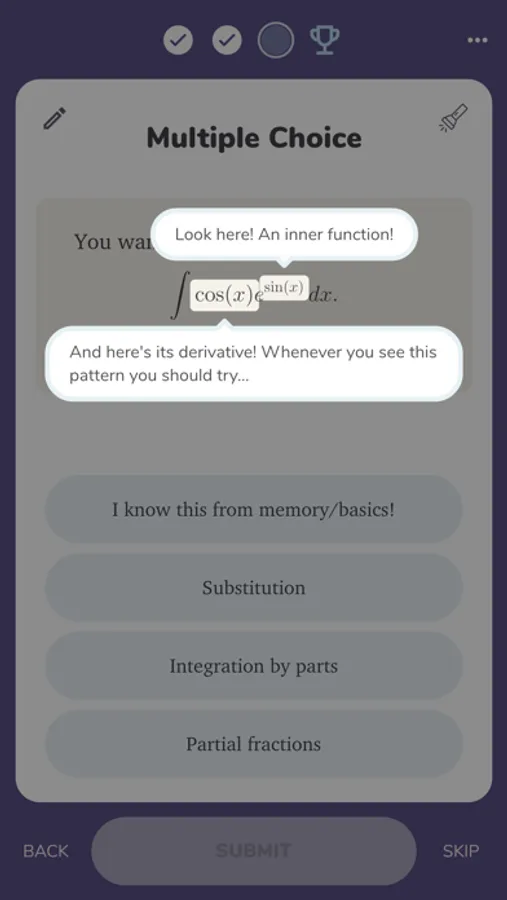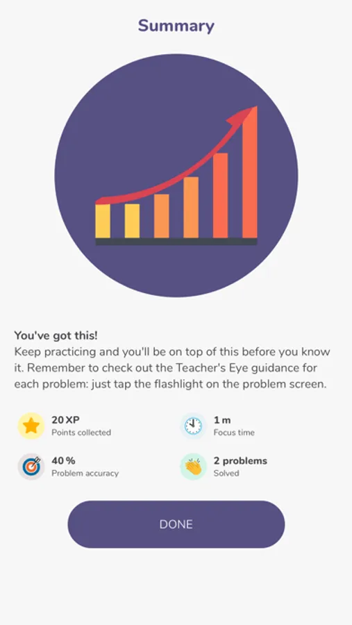We've designed bite-size problems that help you master problem-solving gradually, in chunks that you can do on your phone, wherever you are. Our Teacher's Eye™ guidance visually guides you when you need a bit of help, and our algorithms help you get on top of material you've found challenging.