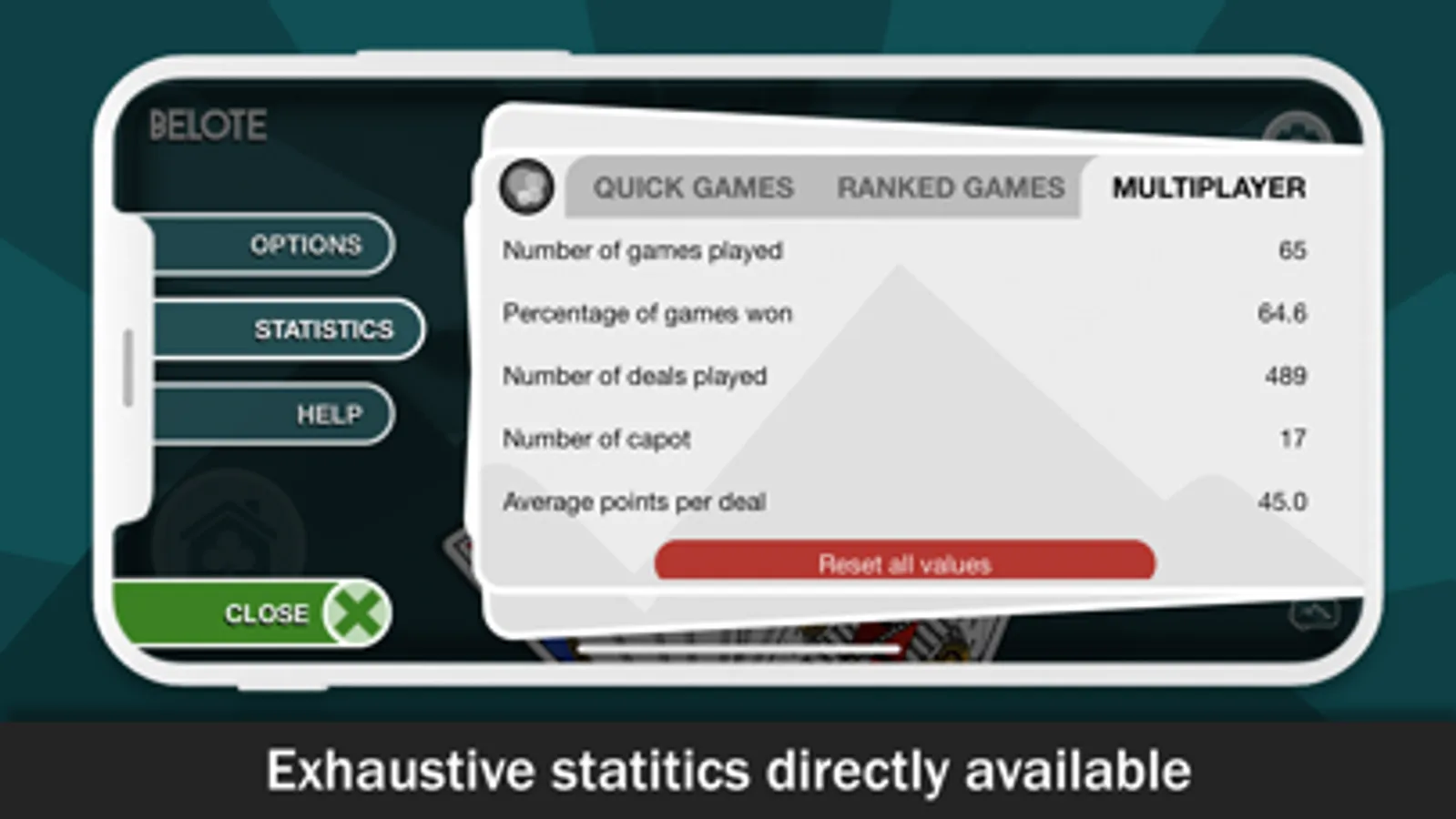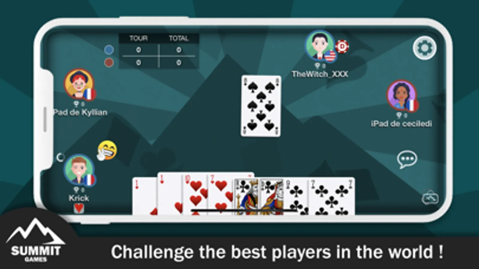 Play Belote game wherever you are with Belote online. Play alone against players controlled by a high level artificial intelligence with a realistic behavior, or compare yourself with other players from around the world.