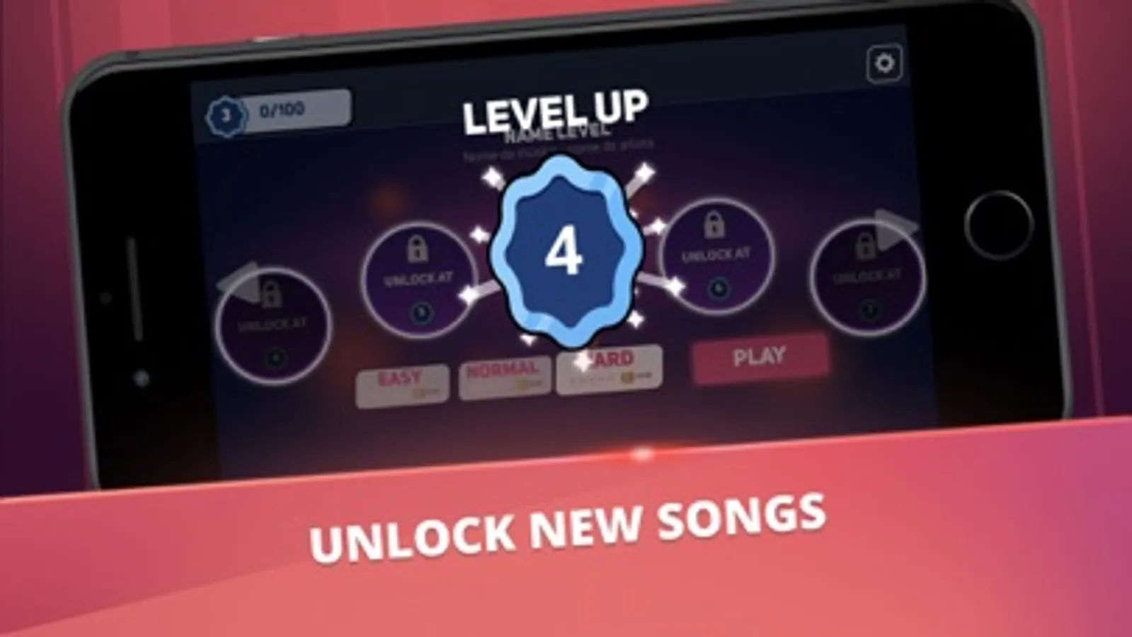 ● Earn stars with your score to unlock levels with new songs
