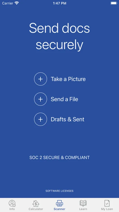 - Securely upload loan documents with your phone’s camera