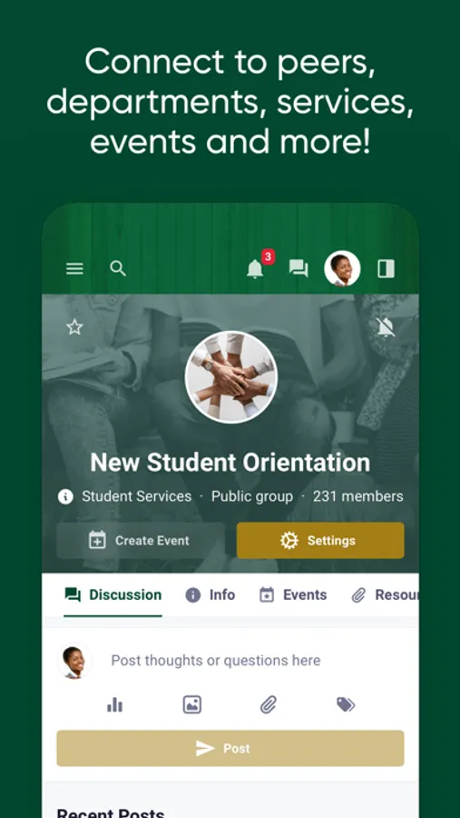 - Find and join campus events