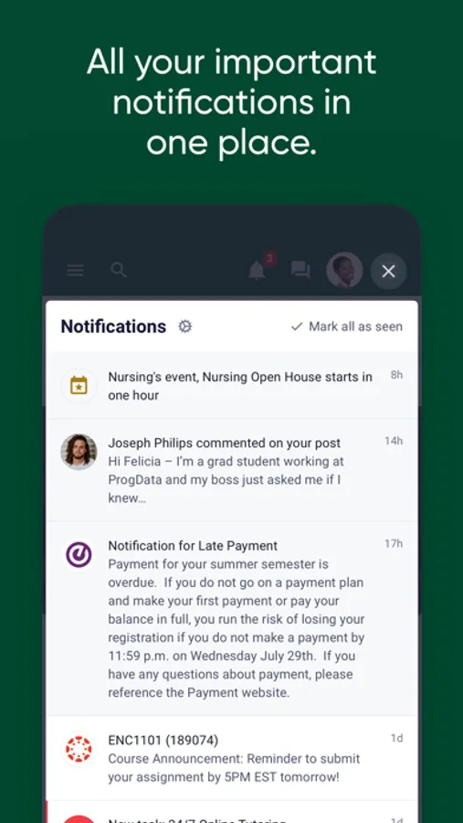 - Keep updated on announcements and alerts relevant to you