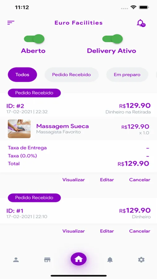 Aplicativo voltado para Comerciantes receberem seus pedidos do Euro Facilities diretamente no aplicativo.