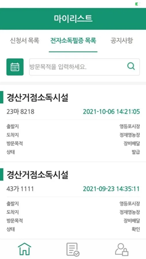 가축질병 확산방지를 위해 전국각지의 소독시설에서 실시하고 있는 축산차량 소독이력을 모바일 기반으로 전산화하여 관리할 수 있는 거점소독시설 전자소독필증 통합관리 시스템을 위한 모바일 앱입니다.