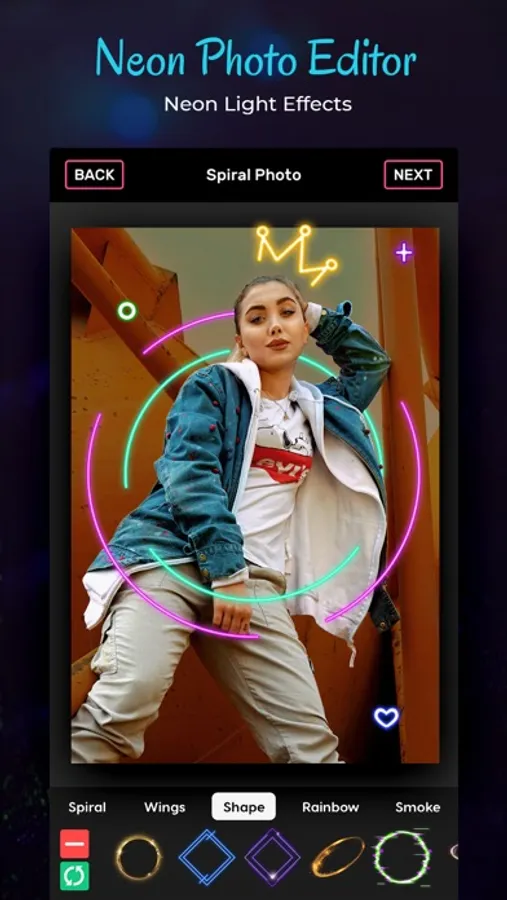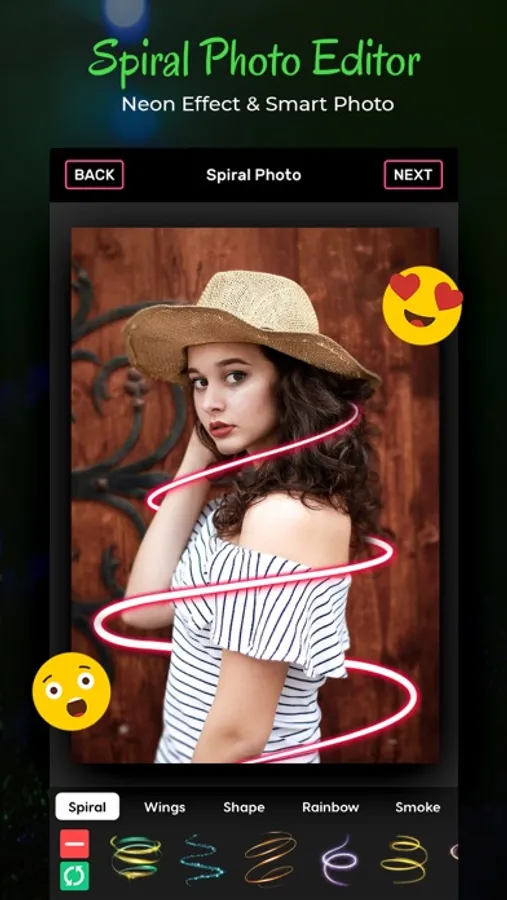 Spiral Photo Editor: Neon Effects, Heart Spiral, Shape Spiral, Neon Spiral, Wing Spiral & Emoji Spiral For Creating Unique and Smart Photo like Studio Effect.