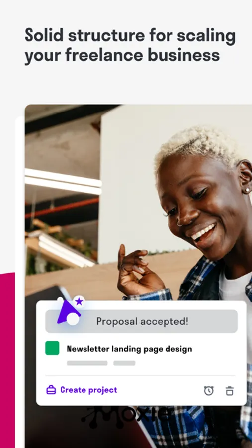 Moxie puts the freedom in freelancing - making working from your phone fast and simple. Your freelance business isn’t tied to a desk and the Moxie app ensures you aren’t either. Send an invoice on location or create a proposal at the bank, Moxie turns seconds into cash, anytime and anywhere.