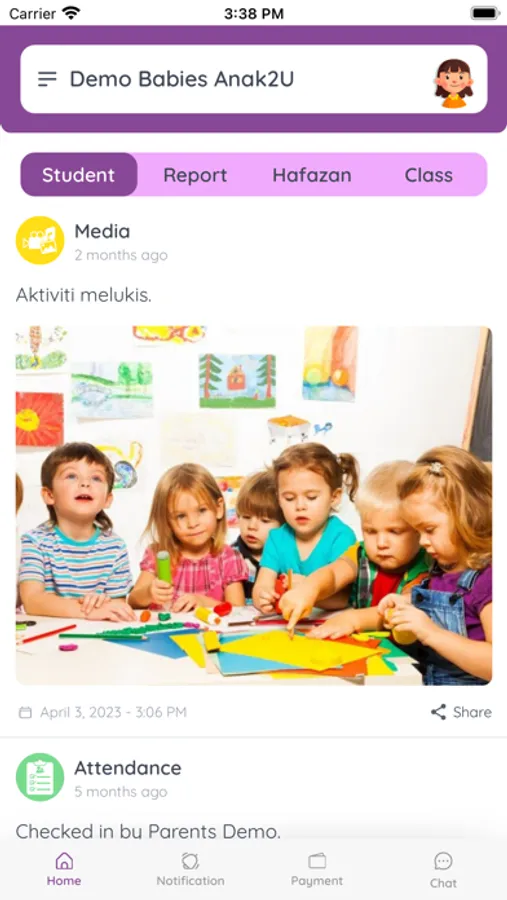 This is an app for Tadika dan Taska Intan Payung (Jati Height and Nilai) powered by Anak2U, Malaysia's first software solution for schools and childcare.