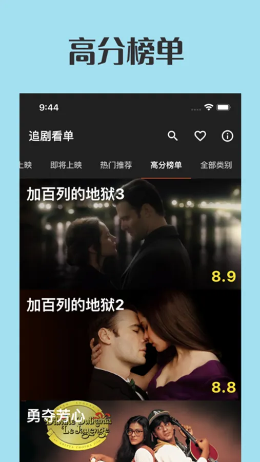 追剧看单App是一款可以展示最新热门影视剧信息的应用,在这里你可以找到最新、最全的影视剧,以及明星人物数据。