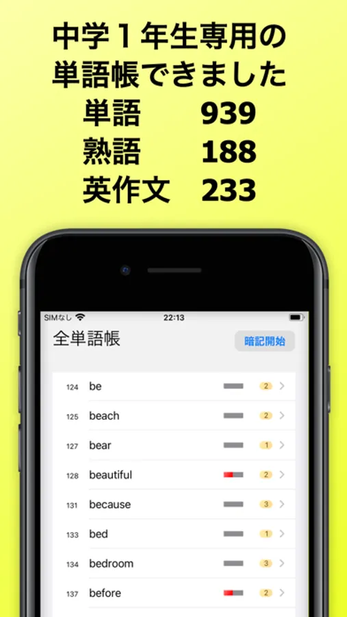 ■中学1年生が、試験で役立つ「使える」単語力を、「すばやく」身につけるためのアプリです。