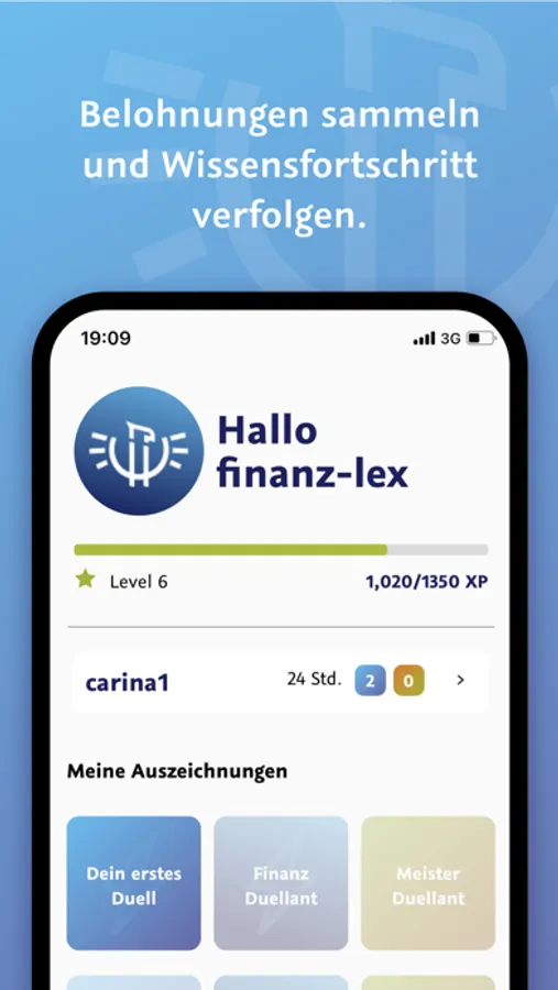 Mit dem FinanzCampus spielerisch und unterhaltsam Finanz-Know-how aufbauen. Unkompliziert und einfach Fachbegriffe verstehen. So sind Bezeichnungen wie „Arbitrage" oder „ETF" kein Buch mit sieben Siegeln mehr. Egal, ob allein oder mit Freunden. Mit jeder abgeschlossenen Lektion sammeln Sie Punkte und werden so Finanz-Profi.
