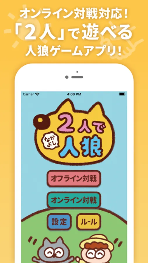 2人でなかよし人狼は、人狼ゲームで必要な「相手を疑う気持ち」と同じくらい「相手を信じる気持ち」がカギになる新しい人狼ゲームです!