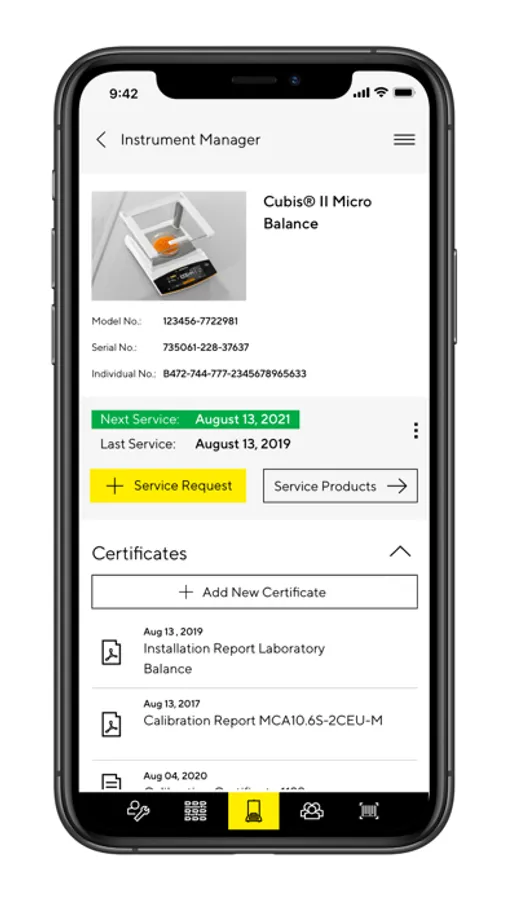 Whenever you need maintenance or repair for your instruments, you can use Service Connect to easily send a service request to Sartorius in just a few steps. To do this, select your relevant instrument previously entered from the Instrument Manager, describe the reason for your request and add your contact details. Your service request can be sent at your own convenience and a member of the Sartorius Service team will contact you as soon as possible.