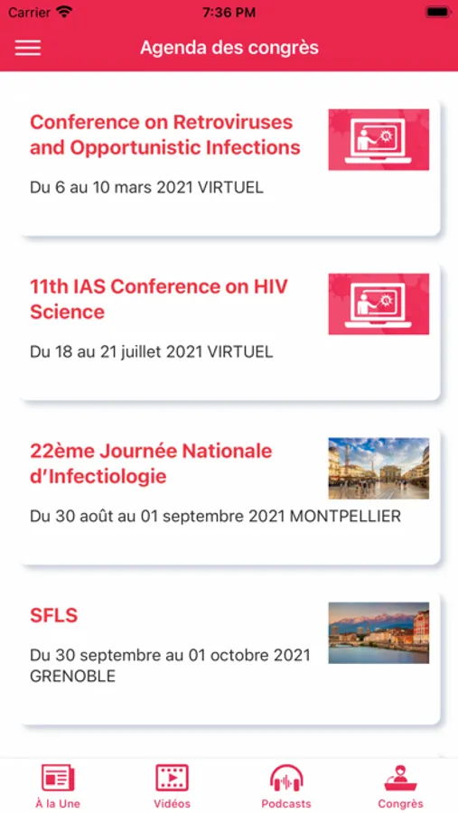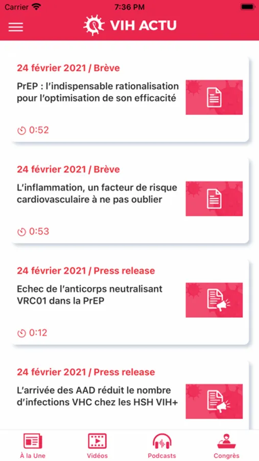 Le contenu est présenté sous forme de brèves illustrées, articles incontournables, press releases, interviews vidéo d’experts, podcasts d’experts, actualités congrès.