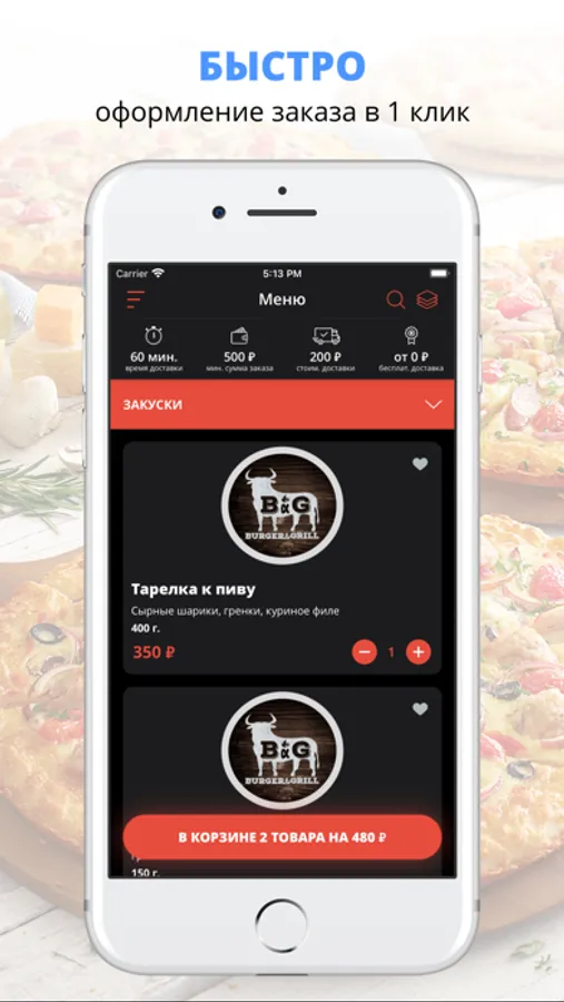 Burger Grill — это сервис для заказа готовой еды из любимого заведения.