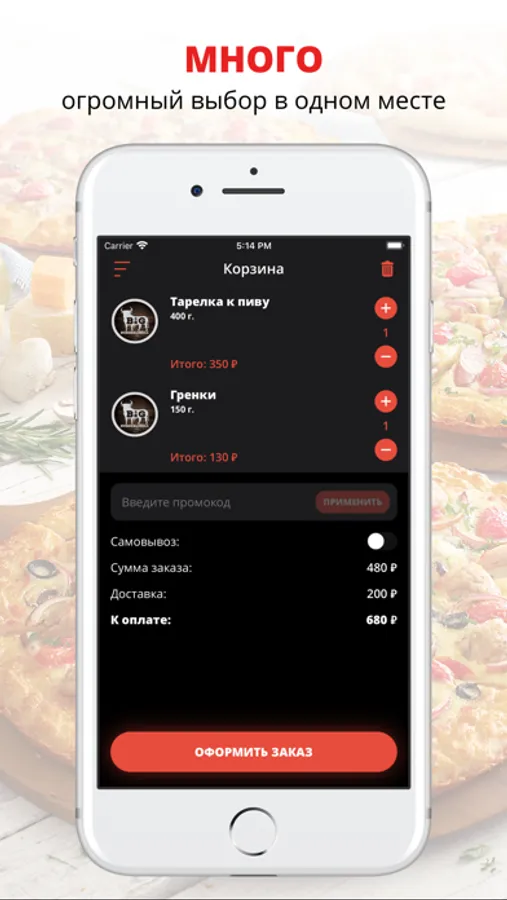 С помощью приложения Вы можете сделать заказ и оплатить всего в несколько касаний.