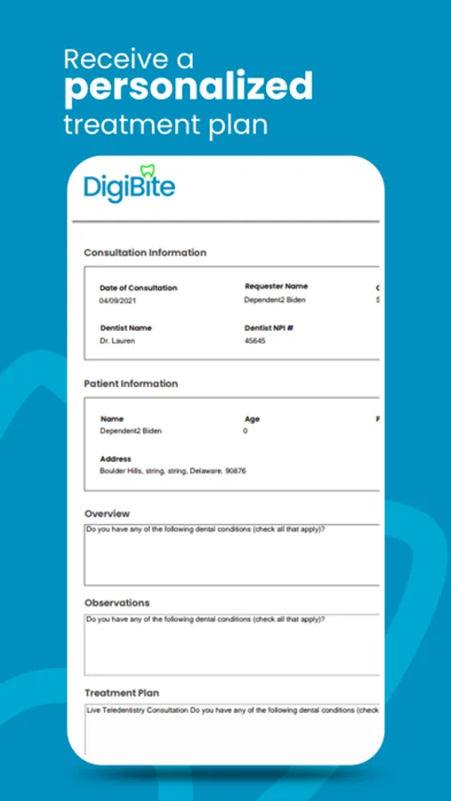 DigiBite is an easy-to-use virtual dental consultation platform for your family that delivers exceptional care and painless dental advice through: