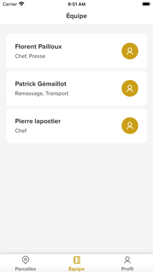 Depuis l’application mobile, vous pouvez lancer un itinéraire (créé avec l’application web) dans votre application GPS pour accéder à une parcelle sans se tromper. Vous avez accès à l’annuaire des chauffeurs et pouvez les contacter directement (envoi de sms ou appel).