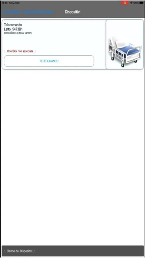 L'app consente di gestire un letto ortopedico, compatibile con la OrionBox, oltre le funzionalità già consentite dal telecomando del letto, che resta operativo, consente di eseguire delle sequenze di movimentazioni complesse e personalizzabili, quali posizioni a poltrona, a culla e cicli di ginnastica passiva. E' disponibile anche un telecomando a contrasto elevato. Ogni movimentazione è personalizzabile, si possono impostare i secondi della singola movimentazione. E' possibile collegare più letti per ambiti quali cliniche e RSA.