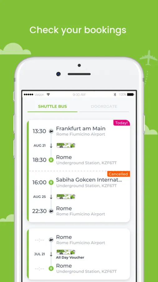 Choose your desired airport connection, enter your passenger information, choose your preferred payment method and get your ticket directly on your smartphone.