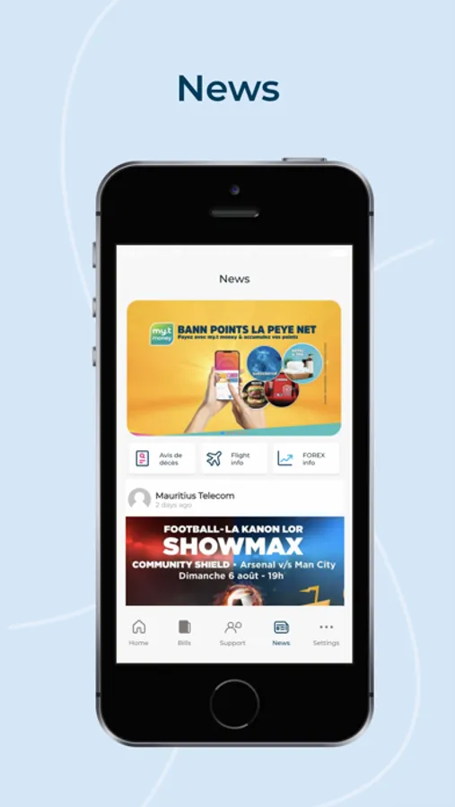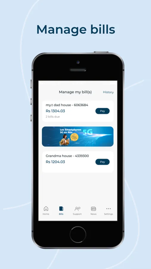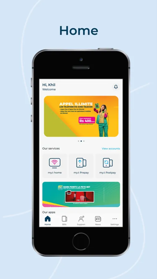 • You can view your bill statements and pay all your Mauritius Telecom bills (my.t home and my.t Postpay) on the Telecom App.