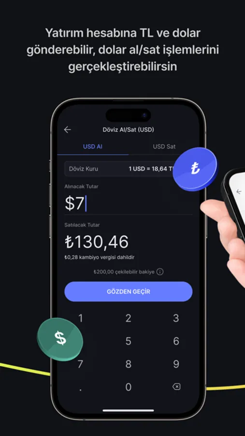 Uygulamayı indirerek dakikalar içinde yatırım hesabını açabilir, para yatırıp hemen yatırım yapmaya başlayabilirsin.