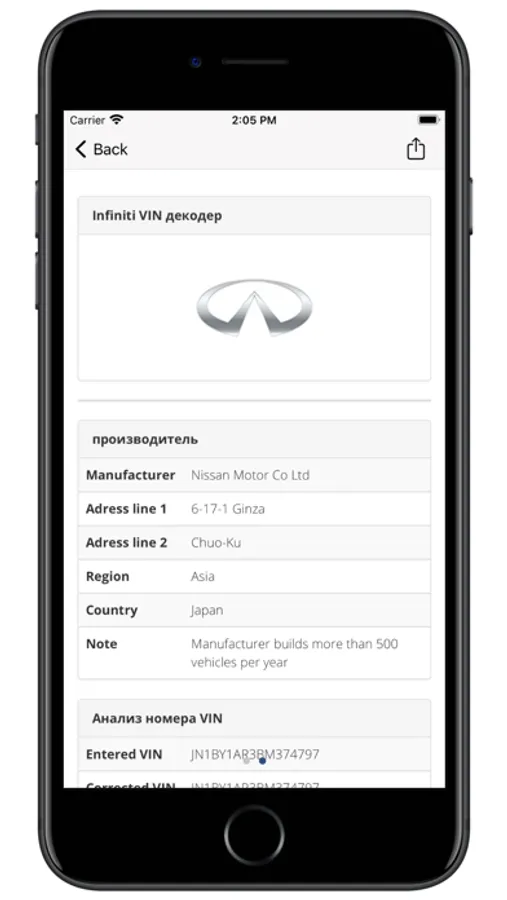 This is a universal VIN decoder. Every car has a unique identifier code called a VIN. This number contains vital information about the car, such as its manufacturer, year of production, the plant it was produced in, type of engine, model and more. For instance, if someone wants to buy a car, it is possible to check the VIN number one the online database to ensure that the car was not stolen, damaged or illegally modified. The VIN number has a specific format that is globally recognized. This format was implemented by the ISO institute. Every car manufacturer is obliged to mark all its vehicles in this special format. This online service allows a user to check the validity of the car and get detailed information on almost any VIN number, search car parts and check the car's history. The VIN also allows a user to check the market value of a new or used car.