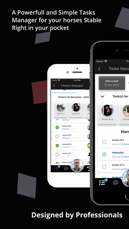 Designed by professionals: Horses Stable Manager was designed and proof-tested by real professionals in France and is now trusted by dozens of stable managers. Thanks to their feedbacks, we have been iterating for a year to deliver a truly useful and adapted application to stable teams to help them monitor their daily activities with horses.