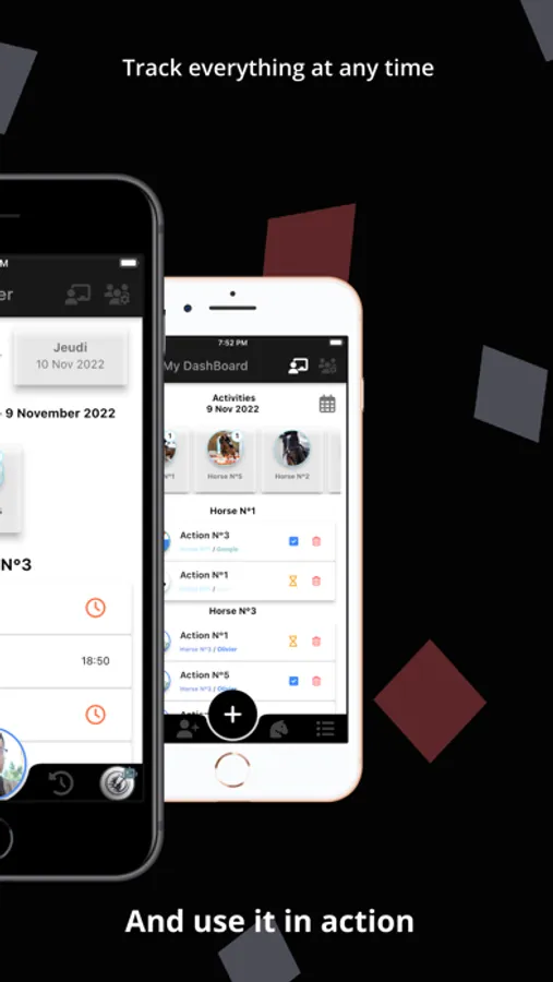 Use it in the action: Set up and validate tasks and activities in a minute or generate daily reports in no time, even directly in the stable. The interface is meant to be really simple and easy to use for both the team that directly takes care of the horses and the management team.