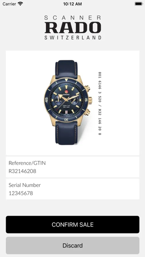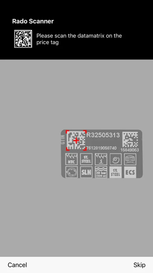 Rado Scanner is an app to scan the label of the watch when it is sold in stores (offline and online sales). The application is intended for official retailers of the Rado brand. It registers the sales of the watches in the stores. The camera is used to scan the GTIN and serial number. No customer data is recorded.