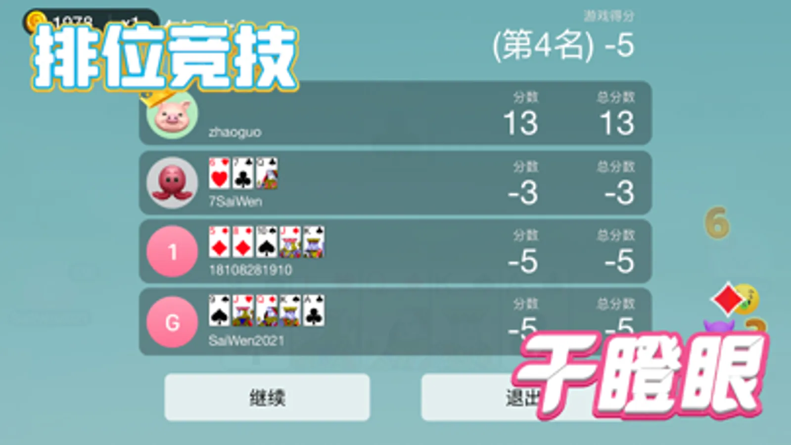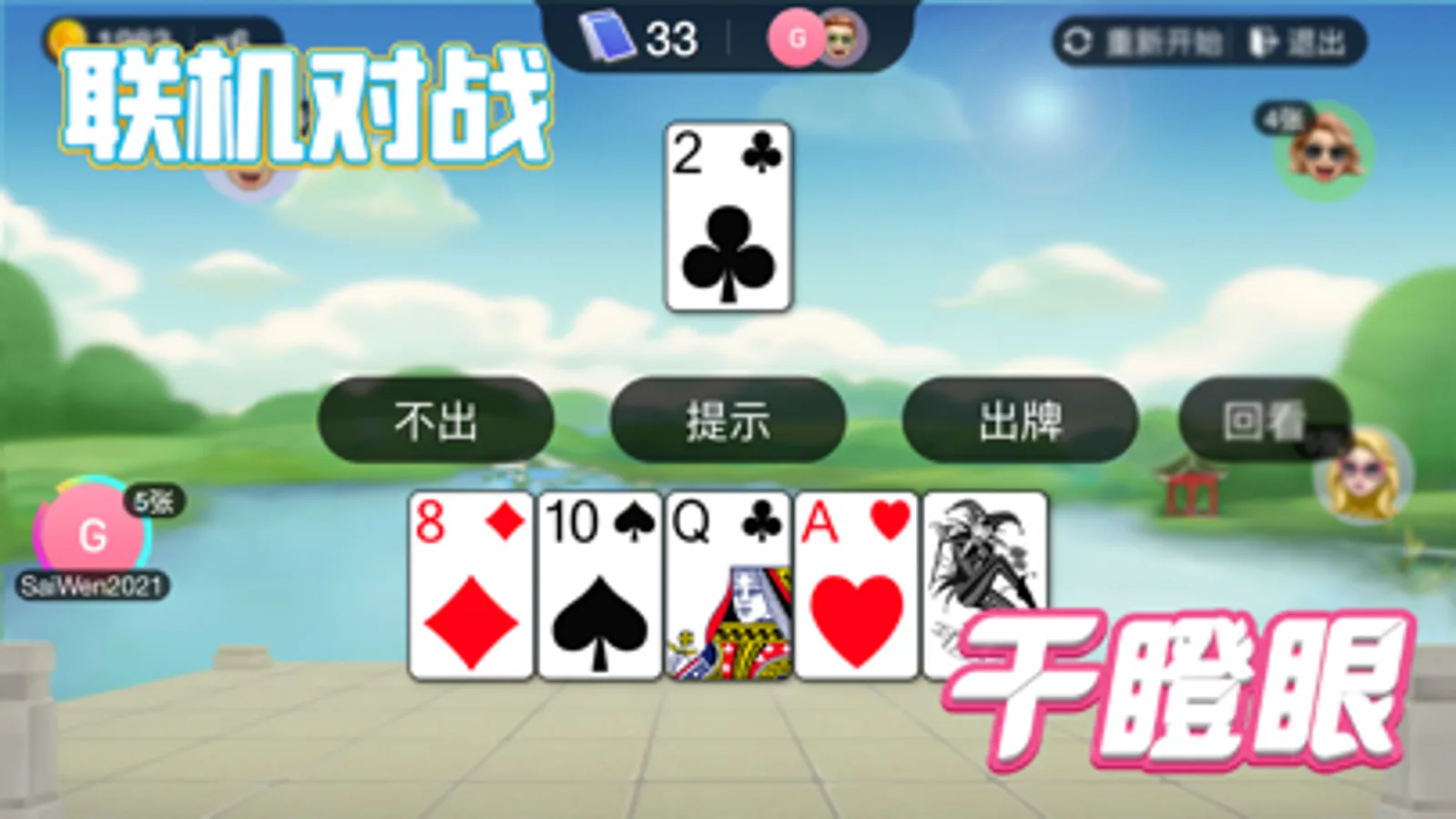 干瞪眼扑克牌(联网对战)一种起源于四川的扑克牌游戏,号称比斗地主刺激10倍。干瞪眼玩法新奇独特,以及玩牌人数比较随意,深受广大玩家的喜爱,从而迅速风靡全国。游戏顾名思义,就是我能出牌的时候,你不能出牌,让你的对家干着急。游戏支持2-4人都能玩,打牌过程中,你的牌局命运变化多样!让我们赶紧来看看游戏的玩法吧。