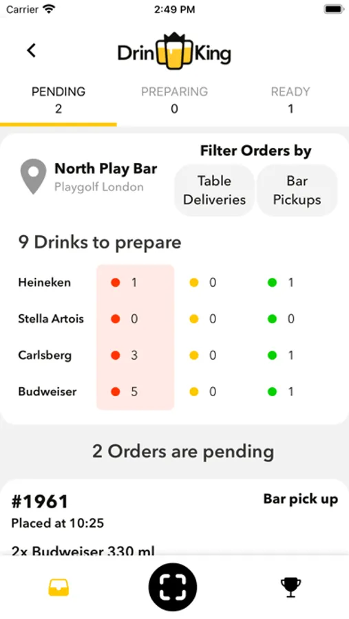 DrinKing is an app that will allow you to order your drinks from the table, dancefloor or stadium stands and have them ready for you when you come to pick them up.