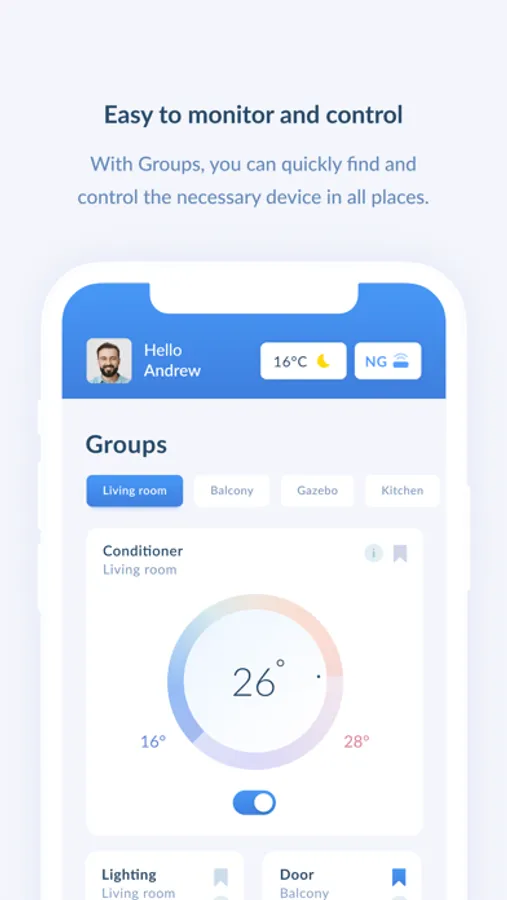 * Create rooms and control areas using "Groups"