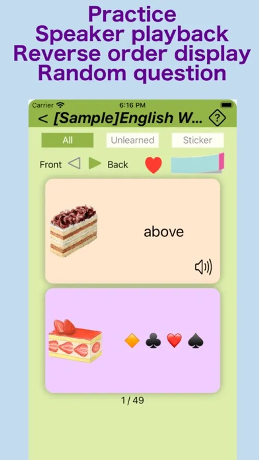 ・ Function to narrow down the target cards for practice (settings such as unlearned cards and sticky notes only)