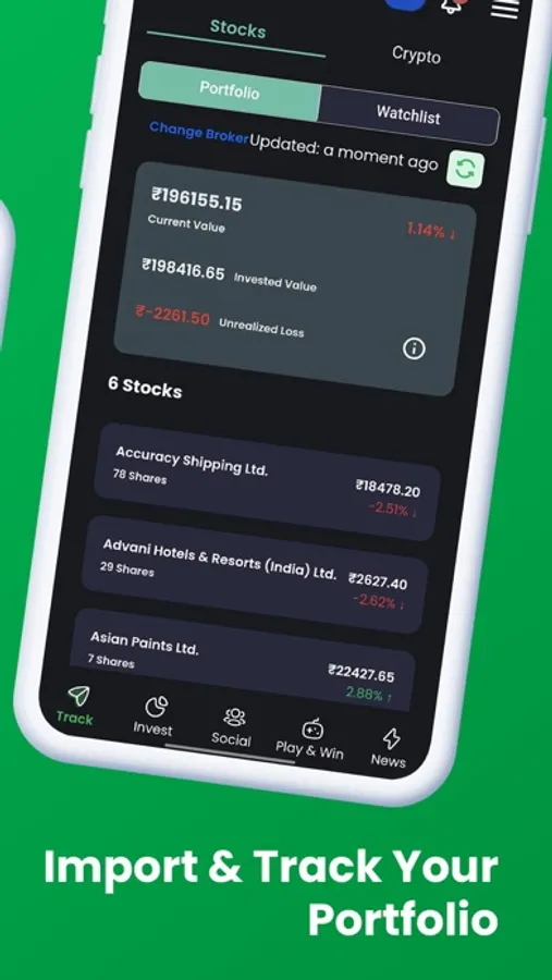 Import & track your portfolio in real-time and get custom alerts based on your investment pattern & on your watchlist!