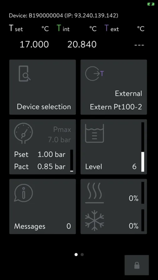 Our app offers a clear screen to get a quick overview of the current temperature control process, set safety and application limit values, as well as control parameters - even customizable according to your own wishes.