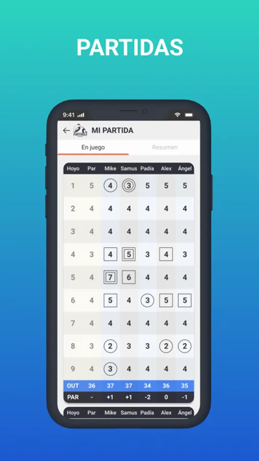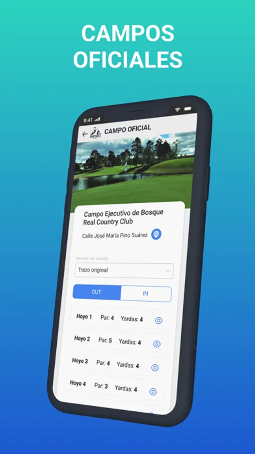 partidas.Permite visualizar los pares y trazo de los hoyos que integran el campo. Además de