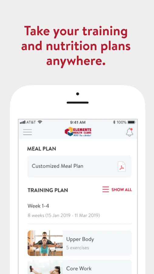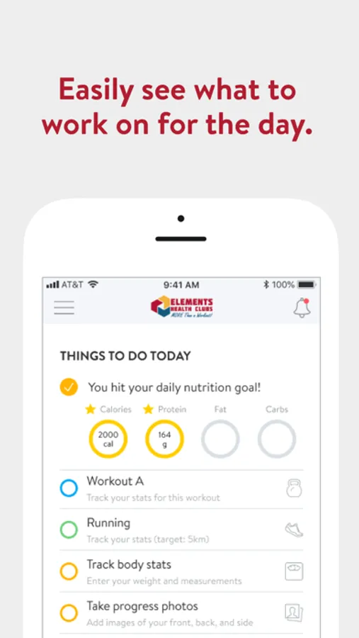 With the Elements Health Clubs App, you can stay connected with your club and start tracking your workouts and meals, measuring results, and achieving your fitness goals, all with the help of your Elements team member.