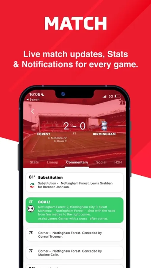 The number one football app for Nottingham Forest fans! Get your Nottingham Forest live scores, instant goal alerts, breaking news, transfer updates, match stats, match highlights, fixtures, results, and Nottingham Forest fan podcasts all in one place.