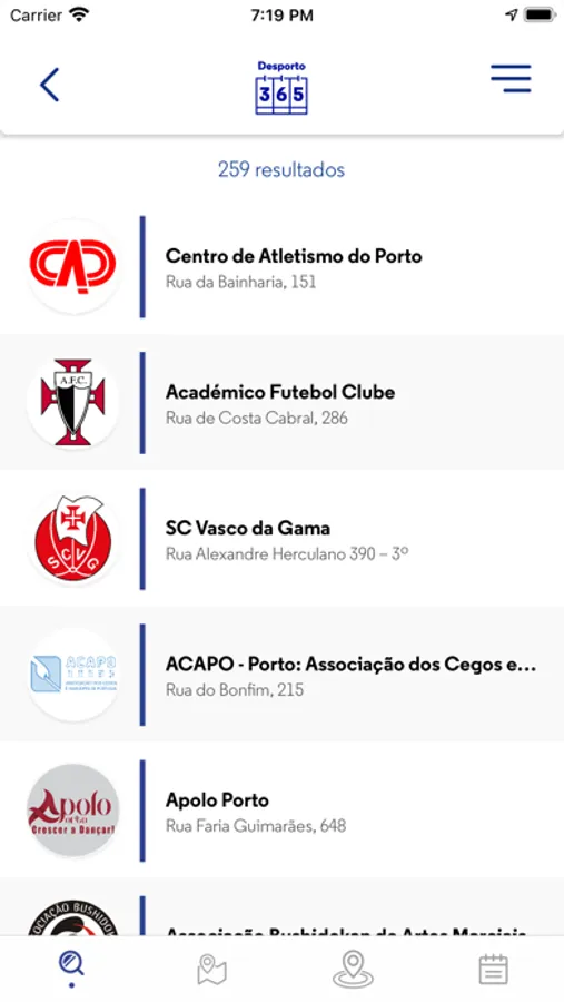 Porque todos os dias contam para ficares em forma, podes definir a tua pesquisar por modalidade, por clube ou instituição, ou ainda por localização geográfica. Se preferires, podes também consultar toda a oferta municipal ao nível equipamentos e programas desportivos dinamizados pela empresa municipal Ágora – Cultura e Desporto do Porto.