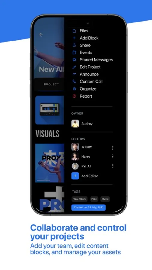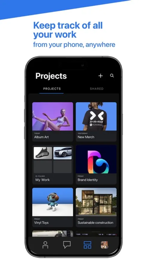 BUILD PROJECTS. Organize your work into Projects by adding photos, videos, documents, or any assets you want to keep track of or manage. A Project can be a design portfolio, a pitch deck, a collaborative workspace, or even your personal archives. Share Projects with your team and assign editor roles. Control access settings to make your Projects private or public. Then, use Projects as a new way of sharing content with the world.