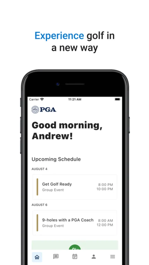 The MyPGA app connects golfers with PGA Coaches, building a foundational relationship with a sport that can be played for a lifetime. Start your golf journey today, with an app that connects you to Coaches and the experience of Private Lessons, PGA Jr. League, and group golf events.