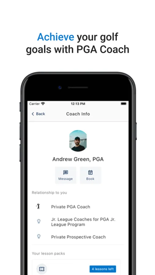 We’ve now brought online booking into the app experience. No longer do you need to call the golf shop or try to get a hold of your coach to schedule a lesson. With online booking you can see all of your coach’s offerings on one screen, making it a quick and easy process.