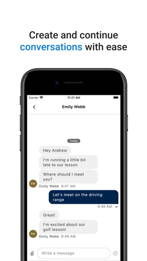 It’s now easier than ever to stay in touch with your PGA Coach. Think of Messaging as the new place for all of the coach-to-student communications. Whether that’s to let your coach know you’re running late to your lesson, to updating them on your most recent round of golf.