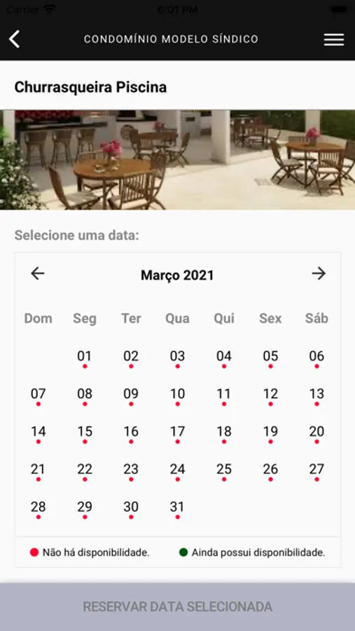 Consulte a disponibilidade e reserve/cancele sua área de lazer.