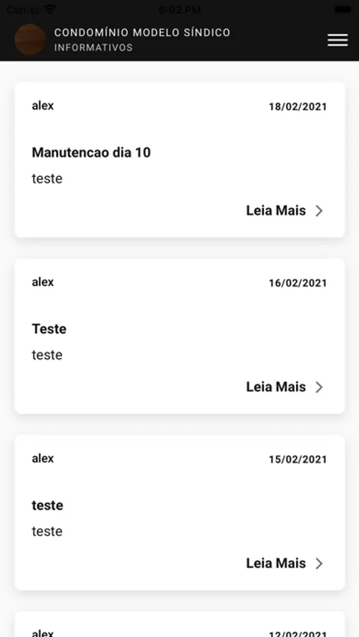 Podem também ser disponibilizado documentos como regimento interno, convenção coletiva e atas de reunião. Todos os usuários receberão notificações avisando do novo informativo. O aplicativo informa ao administrador os moradores que já leram ou não o informativo.