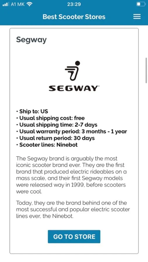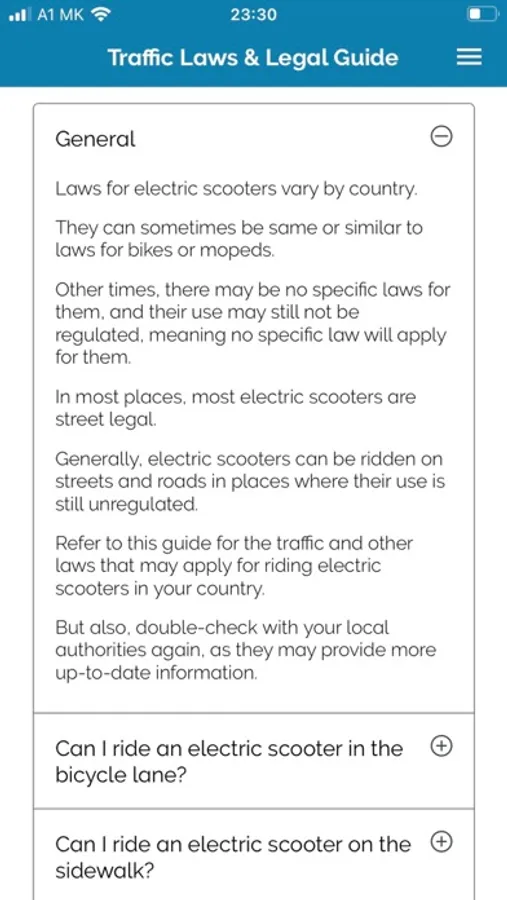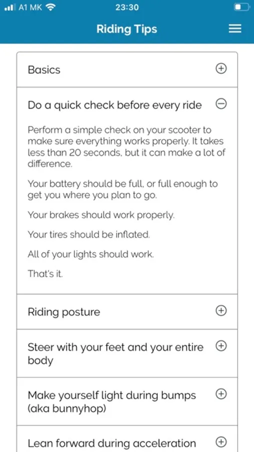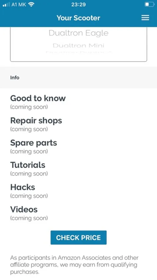 Whether you already own an electric scooter or you are looking to buy one, the app offers many buying tools and resources: