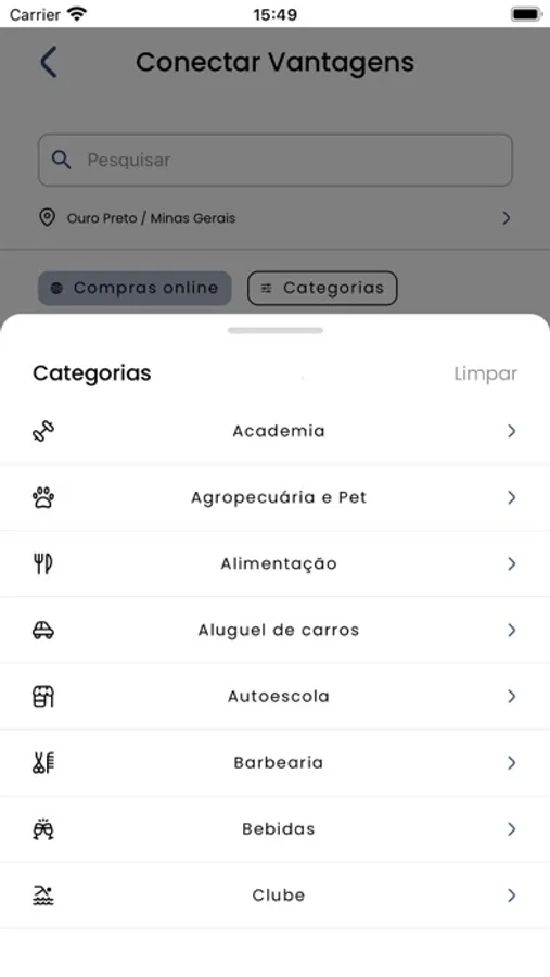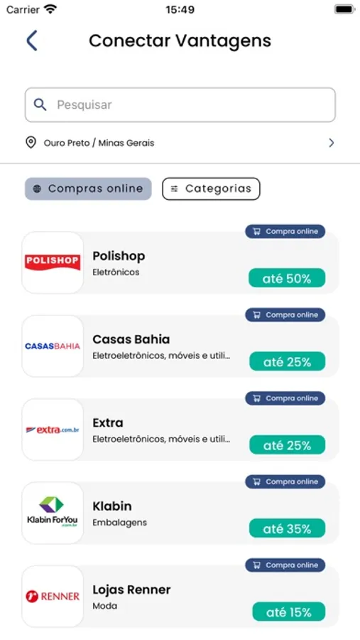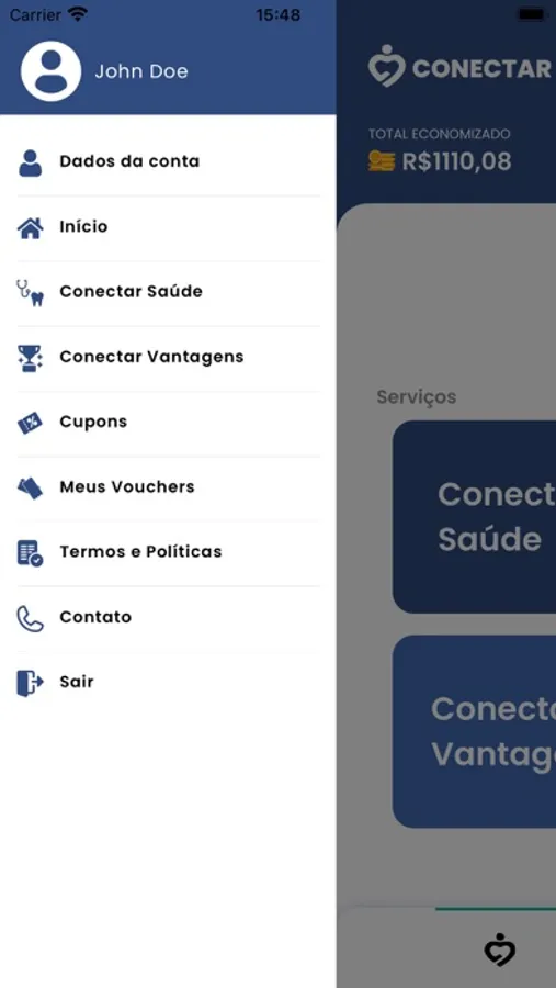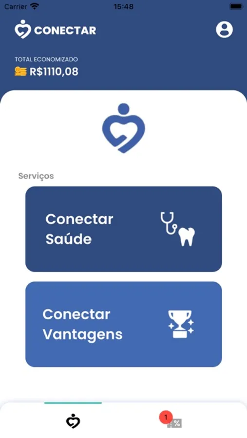 Esse é o app Conectar, onde você consegue excelentes descontos nos mais diversos lugares!