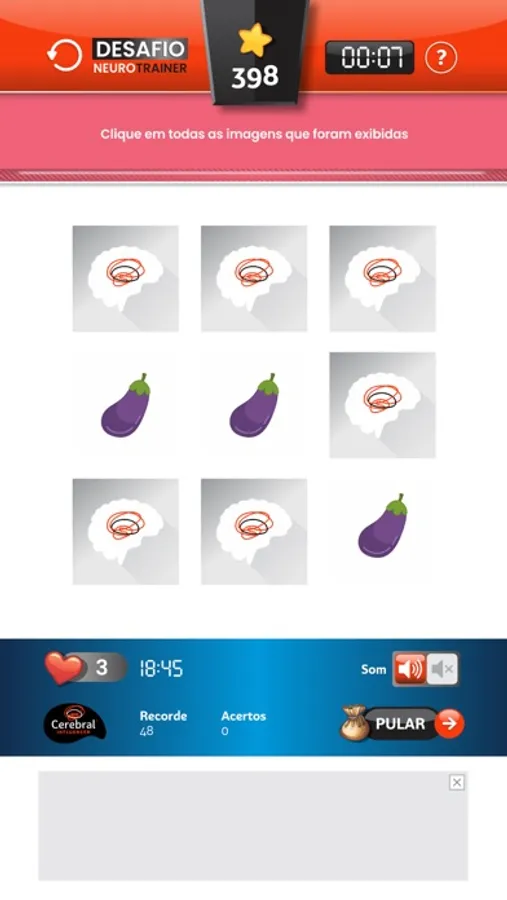 Realize um treinamento completo de Ginástica Cerebral com uma variação de todos os Jogos, intercalados no modo randômico.
