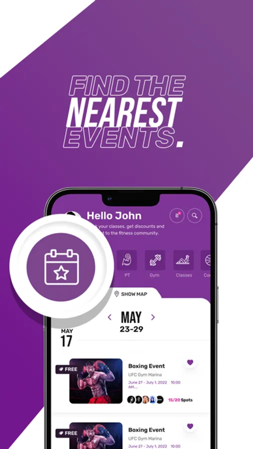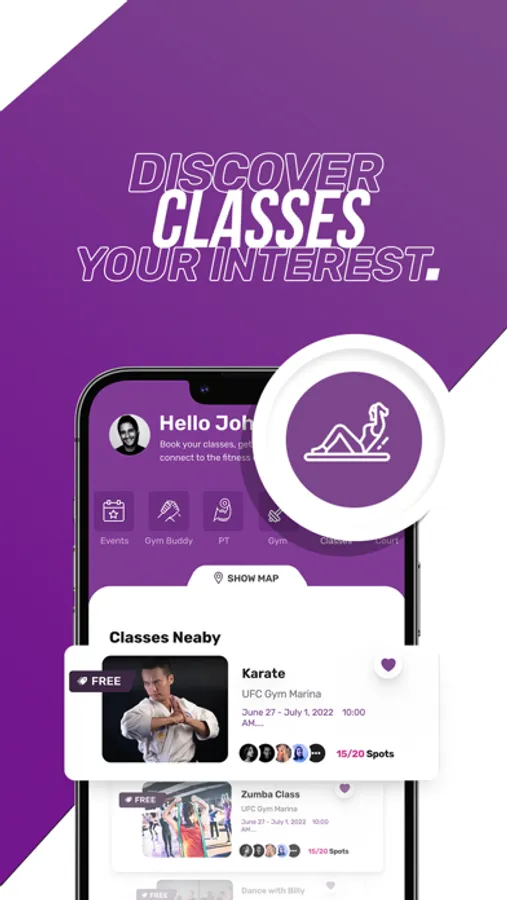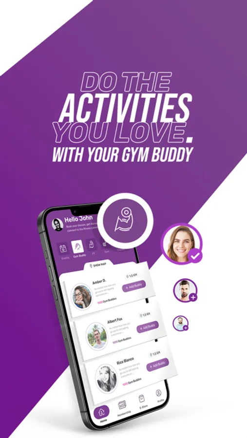 Connecting you with users with the same interests inspires and motivates like no other. You can train, attend class or go to the gym together.